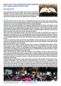 Report of a visit to Uganda from 8 till 23 September 2017, Paul Meijer and Martin Ulrich 3 März 2021 By allnations Report of a visit to Uganda from 8 till 23 September 2017, Paul Meijer and Martin Ulrich